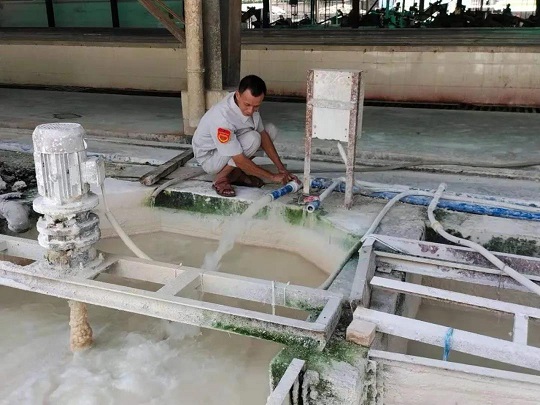 金山加工分公司破解了TSR-10灰分超標(biāo)難題,管理人員在調(diào)節(jié)石灰水。潘升煜 攝