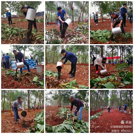 為將結(jié)對(duì)共建落到實(shí)處,第一黨支部結(jié)合當(dāng)前基地分公司正在開展膠園冬春管理工作的實(shí)際,與豐收隊(duì)黨支部共同商定開展“結(jié)對(duì)共建同進(jìn)步 義務(wù)獻(xiàn)肥促冬管”主題黨日活動(dòng)。在海墾集團(tuán)黨委委員、副總經(jīng)理,海南橡膠黨委書記、董事長艾軼倫等黨員帶領(lǐng)下,支部黨員積極響應(yīng)號(hào)召,自發(fā)捐款3400元購買羊糞生物有機(jī)肥,并施放到豐收隊(duì)的橡膠林段,為明年橡膠增產(chǎn)增收貢獻(xiàn)綿薄之力。