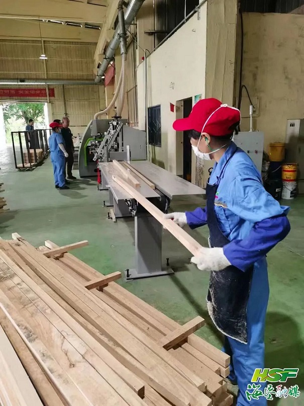 “現(xiàn)在加工廠主要對宜家FSC‘零添加’橡膠木刨光材和定制料產(chǎn)品進行生產(chǎn)加工?!焙▽毾鹆之a(chǎn)集團生產(chǎn)技術(shù)研發(fā)部部長郭雄彬介紹,加工廠自9月8日局部復工以來,通過強化閉環(huán)管理、防疫消殺、監(jiān)測登記、物資保障等舉措,加快推進訂單保質(zhì)保量完成。