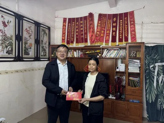 海南橡膠黨委副書記、總經(jīng)理楊宇一行赴加釵分公司,走訪慰問了全國勞模、海南橡膠赴非專家虞海濃的家屬。