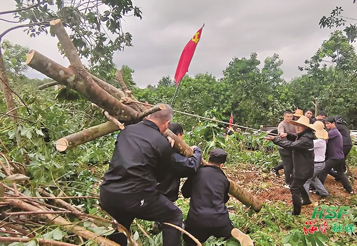 9月7日一大早,儋州市蘭洋鎮(zhèn),海南農(nóng)墾旅游集團有限公司和海南橡膠西聯(lián)分公司組織黨員干部在路面上,移走倒伏的大樹,清理斷枝殘葉。